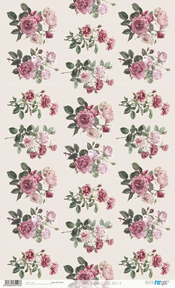 PFY-15147 – Papel Arroz 54×33 cm 25-30 gr. (Vintage Roses IV) – pack 6 ud.