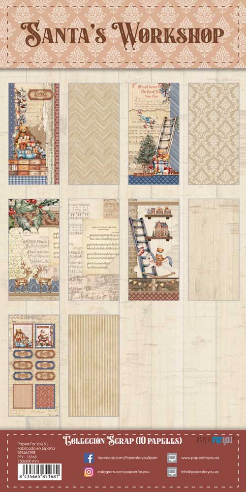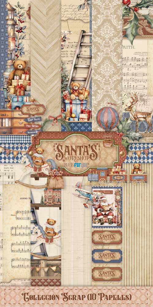 PFY-15168 – Colección 10 Papeles Scrap Una cara 180gr 6″x12″ (Santa’s Workshop) – pack 4 ud.