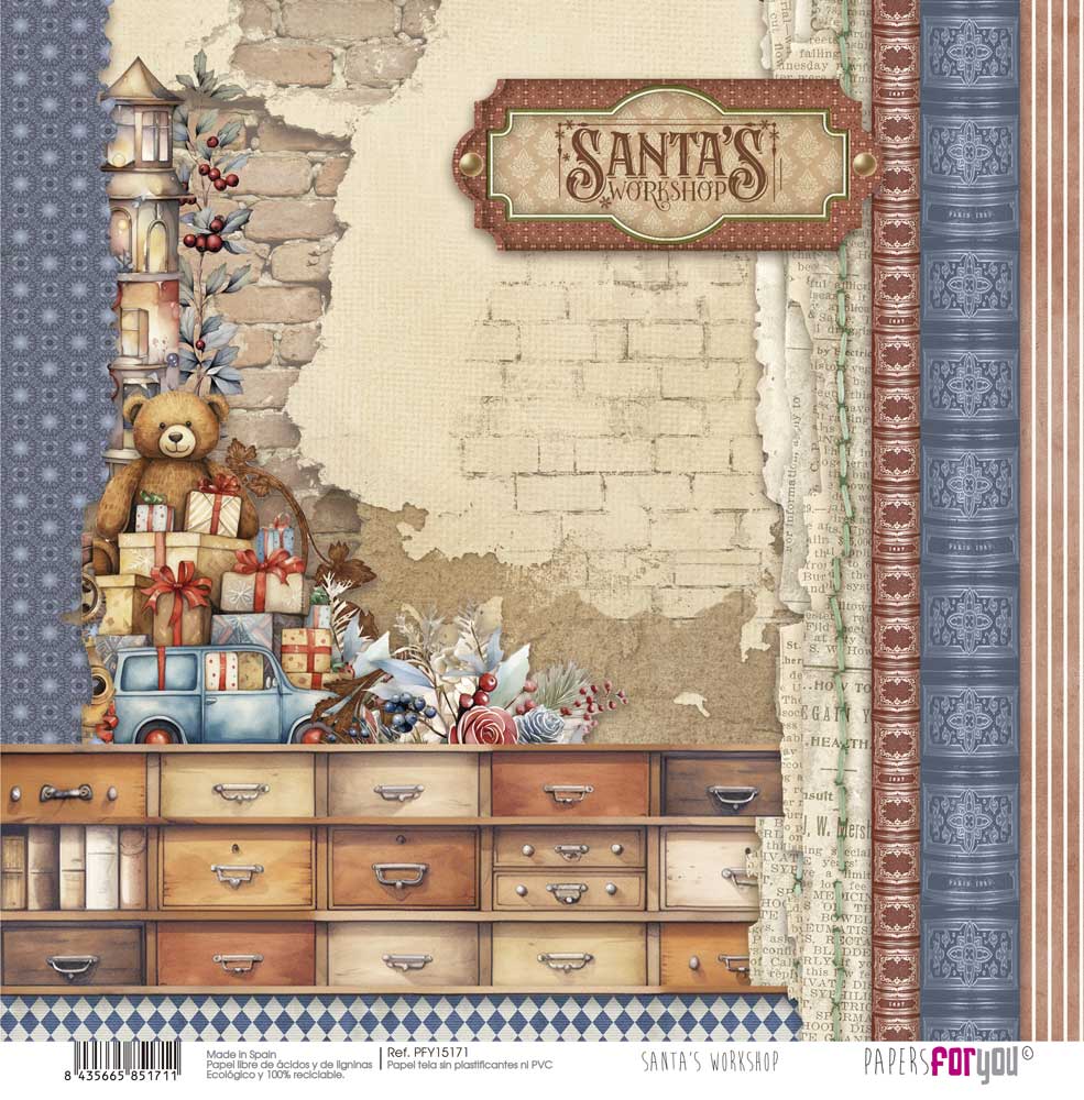 PFY-15171 – Papel Scrap Tela 125gr 12″x12″ (Santa’s Workshop) – pack 12 ud.