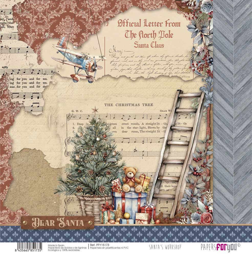 PFY-15173 – Papel Scrap Tela 125gr 12″x12″ (Santa’s Workshop) – pack 12 ud.