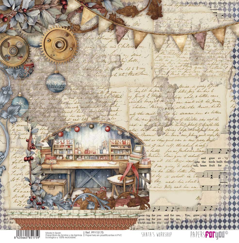 PFY-15175 – Papel Scrap Tela 125gr 12″x12″ (Santa’s Workshop) – pack 12 ud.