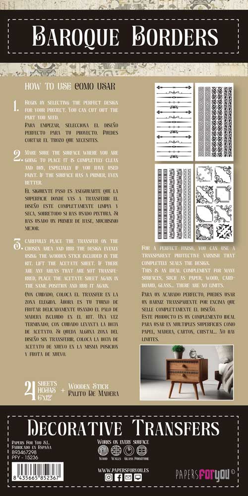 PFY-15236 – Decorative Transfers 15x30cm 6″x 12″ 4 Hojas (Baroque Borders) – pack 2 ud.