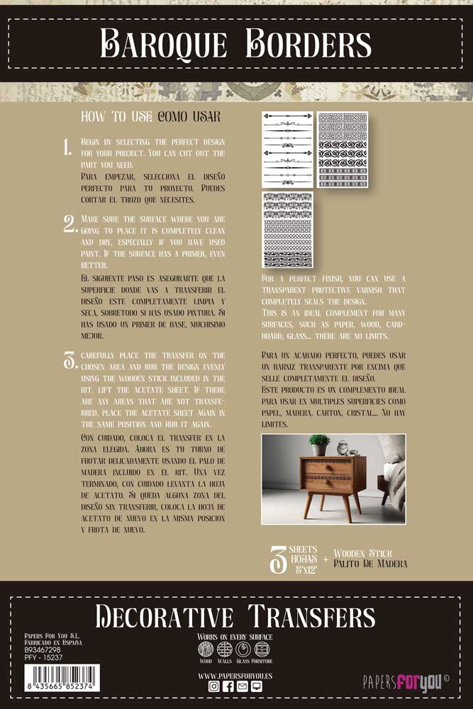 PFY-15237 – Decorative Transfers 20x30cm 8″x 12″ 3 Hojas (Baroque Borders) – pack 2 ud.