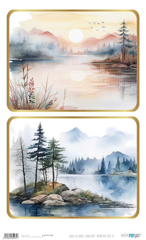 PFY-15265 – Papel Arroz 54×33 cm 25-30 gr. Landscape: Mountain Lake VI – pack 6 ud.