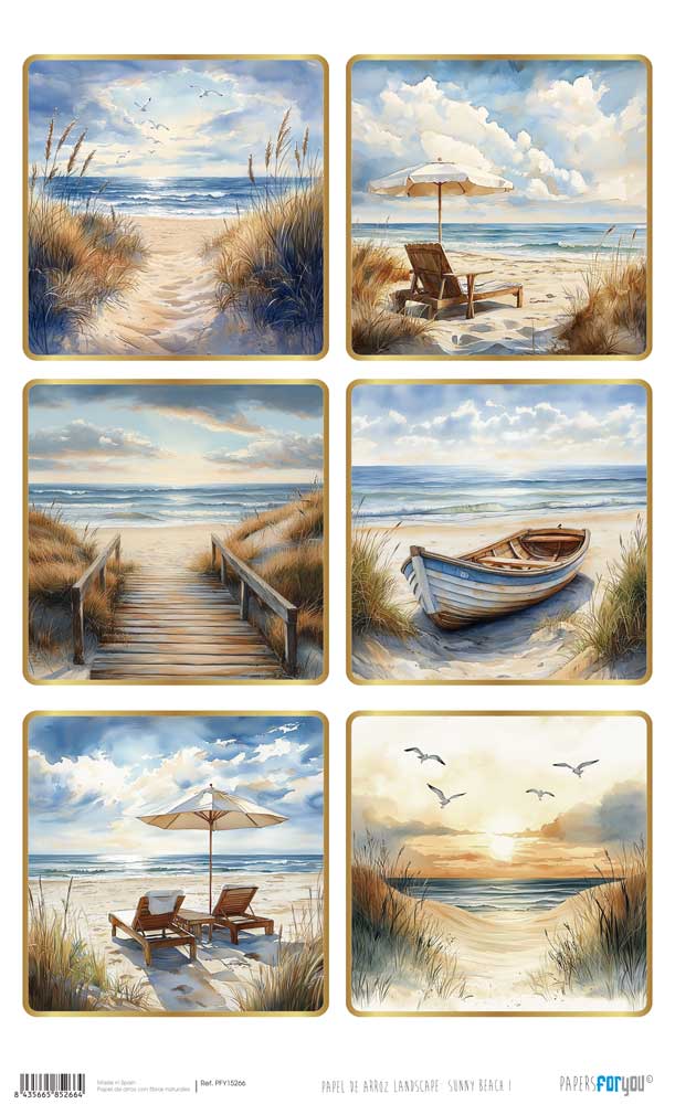 PFY-15266 – Papel Arroz 54×33 cm 25-30 gr. Landscape: Sunny Beach I – pack 6 ud.