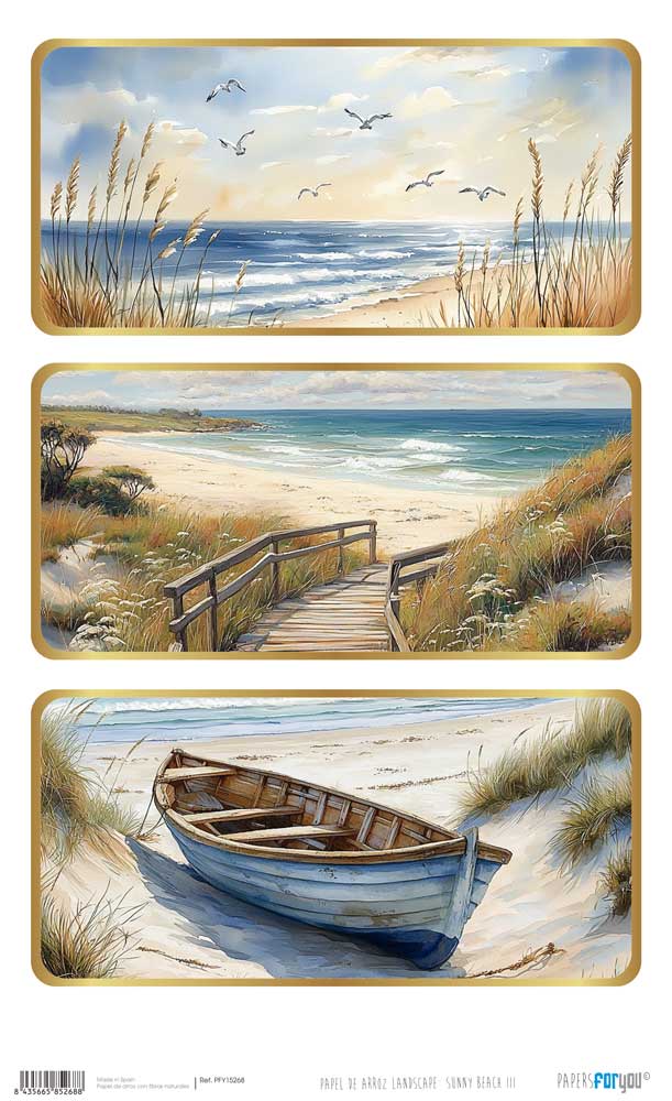 PFY-15268 – Papel Arroz 54×33 cm 25-30 gr. Landscape: Sunny Beach III – pack 6 ud.