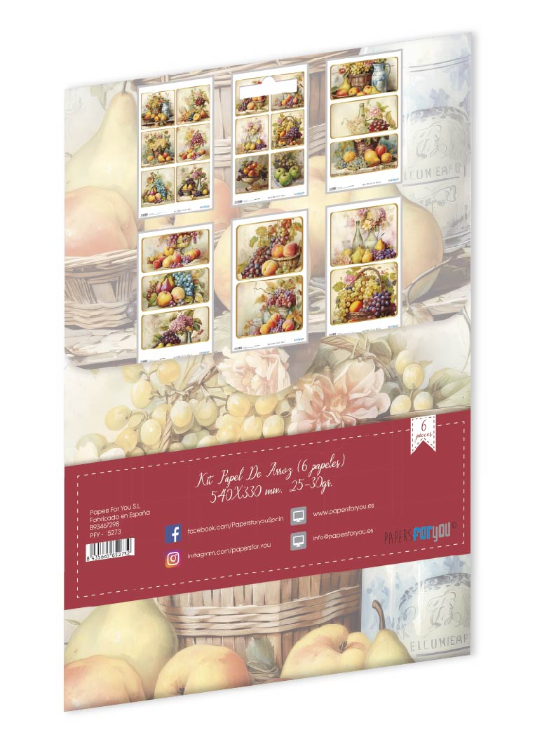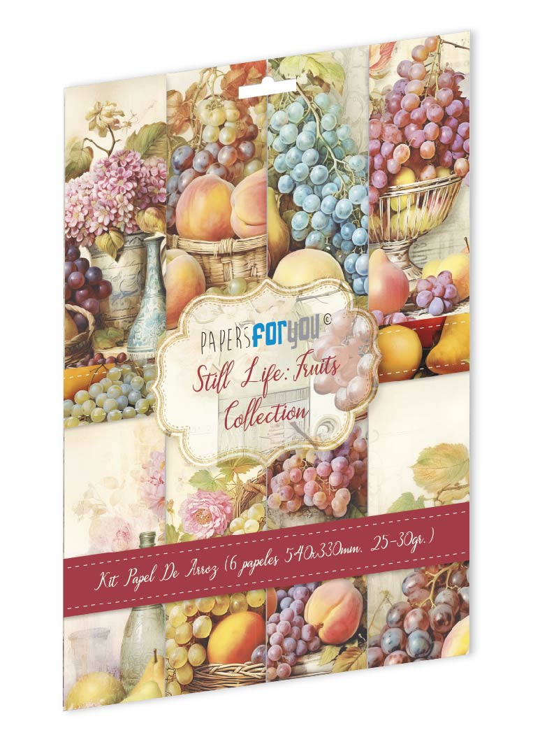 PFY-15273 – Colección de 6 Papeles Arroz 54×33 cm 25-30 gr. Still Life: Fruits – pack 4 ud.