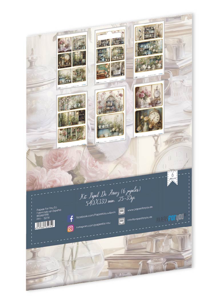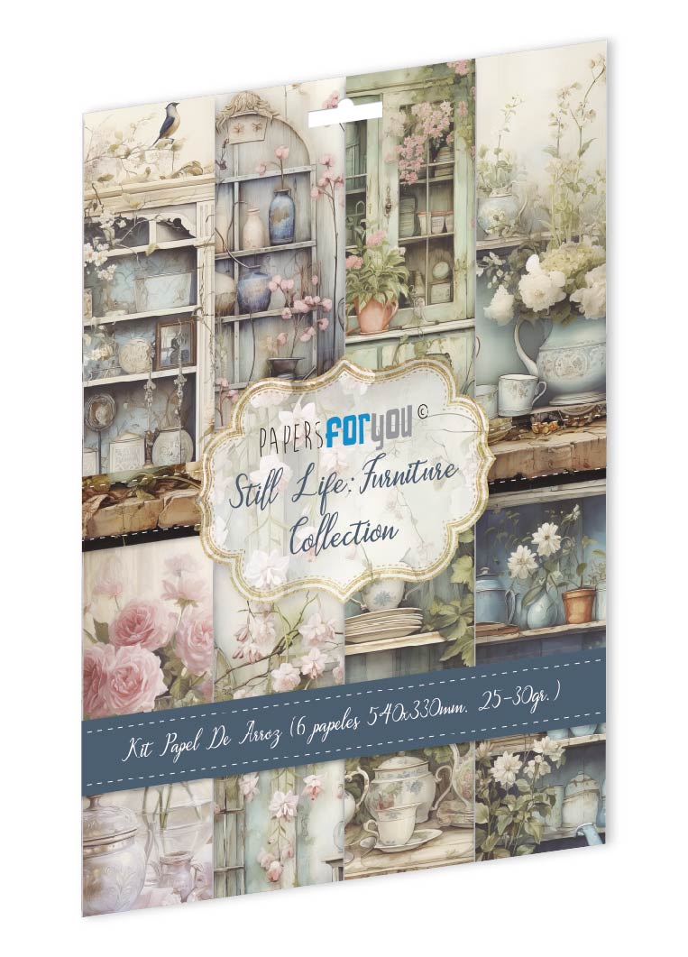 PFY-15274 – Colección de 6 Papeles Arroz 54×33 cm 25-30 gr. Still Life: Furniture – pack 4 ud.