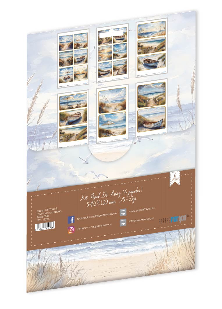 PFY-15276 – Colección de 6 Papeles Arroz 54×33 cm 25-30 gr. Landscape: Sunny Beach – pack 4 ud.