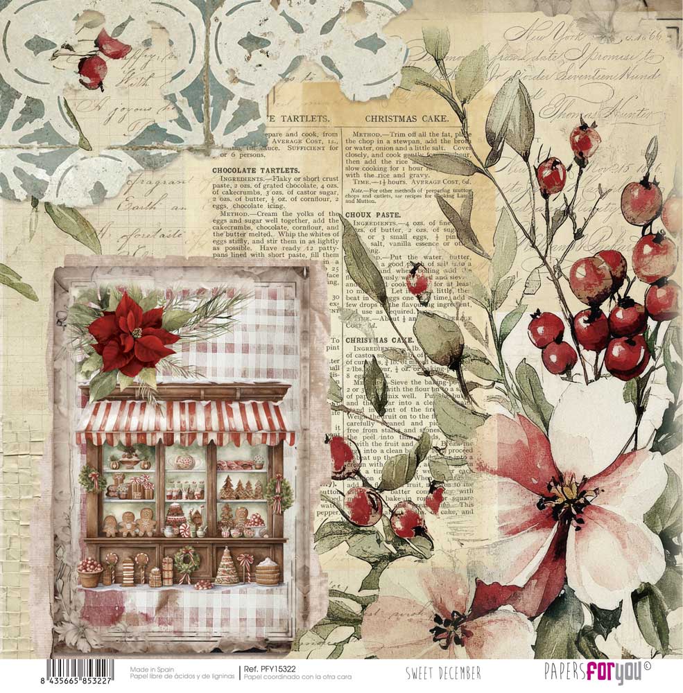 PFY-15322 – Papel Scrap doble cara 180gr 12×12 (Sweet December) – pack 12 ud.