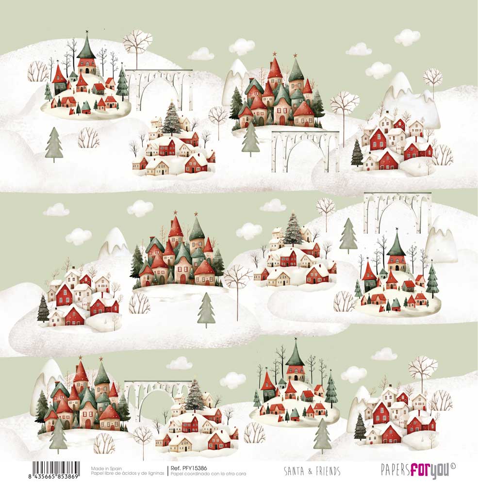 PFY-15386 – Papel Scrap doble cara 180gr 12×12 (Santa & Friends) – pack 12 ud.