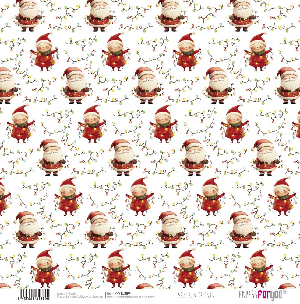 PFY-15389 – Papel Scrap doble cara 180gr 12×12 (Santa & Friends) – pack 12 ud.