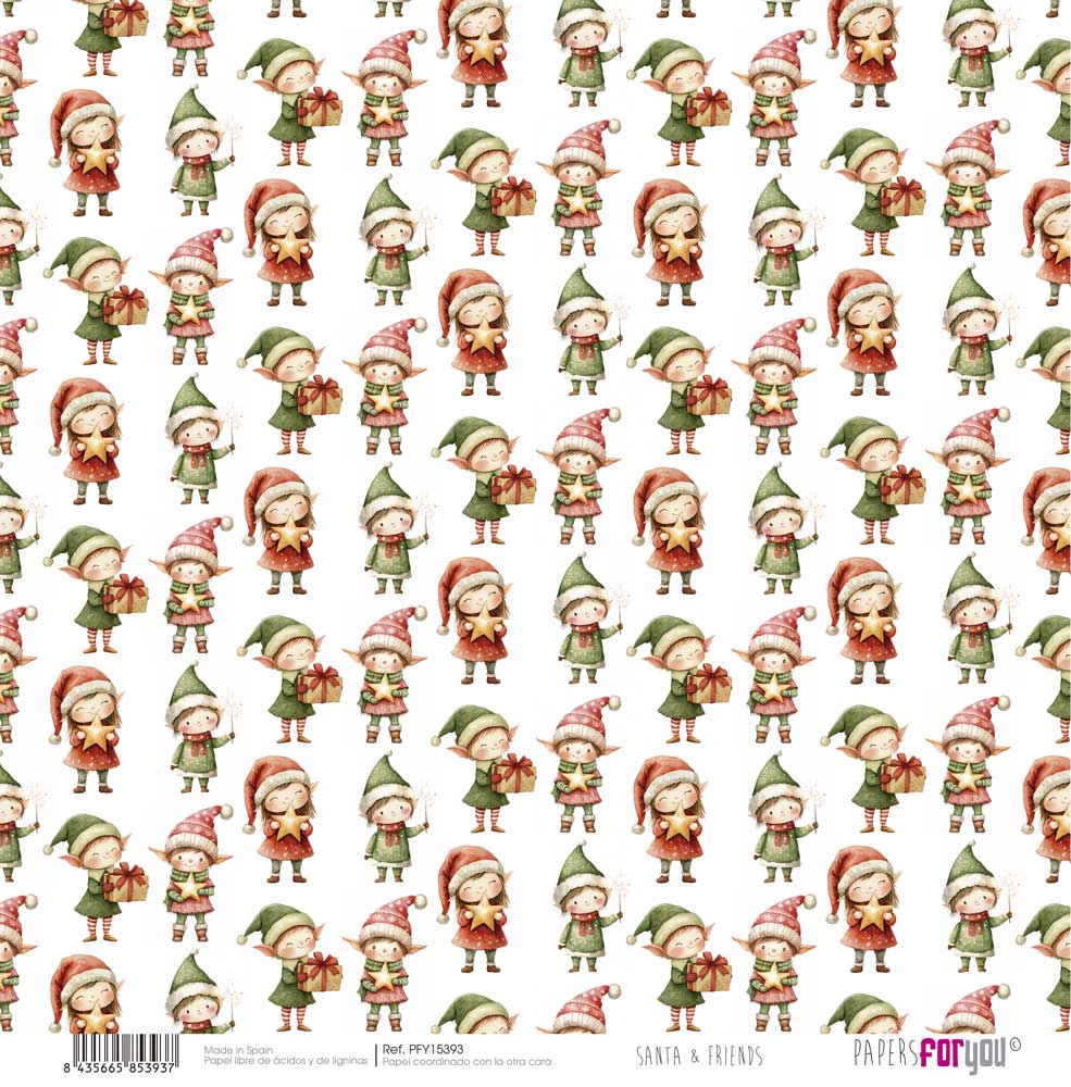 PFY-15393 – Papel Scrap doble cara 180gr 12×12 (Santa & Friends) – pack 12 ud.