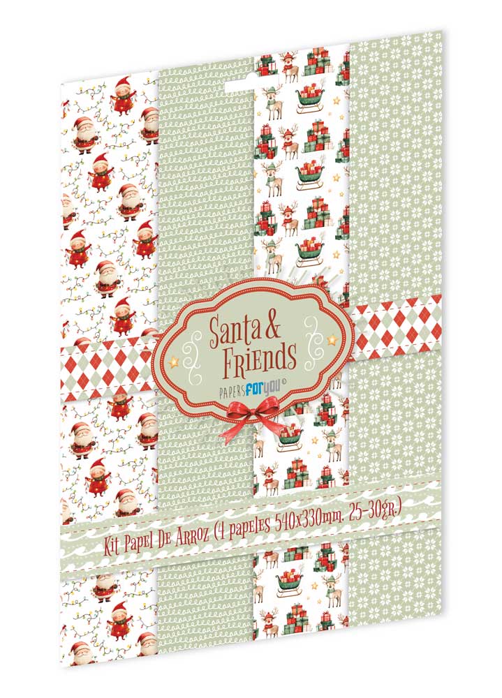 PFY-15442 – Colección de 4 Papeles Arroz 54×33 cm 25-30 gr. (Santa & Friends II) – pack 4 ud.