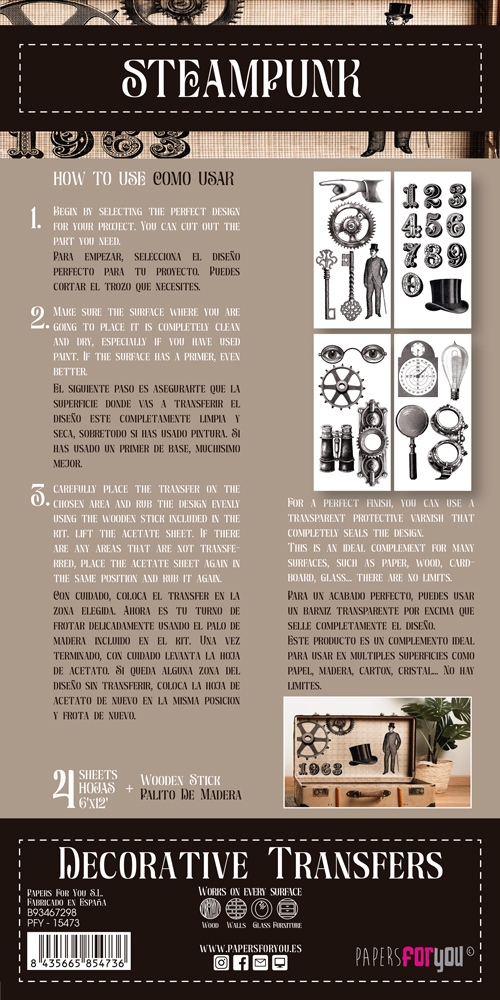 PFY-15473 – Decorative Transfers 15×30 (Steampunk) – pack 2 ud.