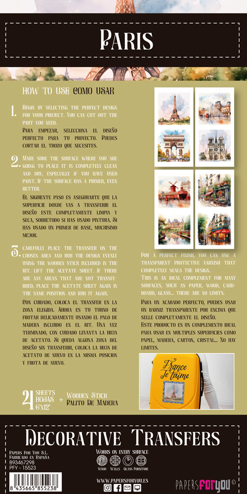 PFY-15523 – Decorative Transfers 15x30cm 6″x 12″ 4 Hojas (Paris II) – pack 2 ud.