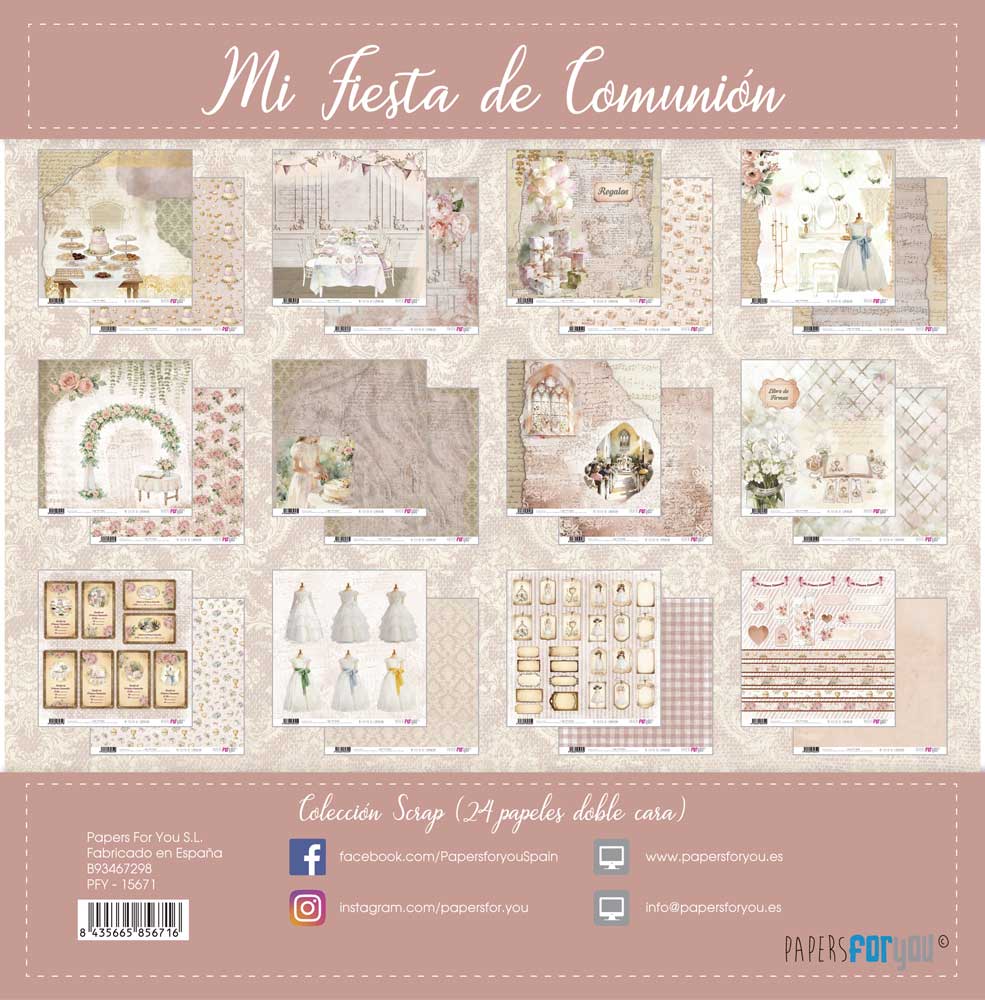 PFY-15671 – Colección 24 Papeles Scrap doble cara 180gr 8″x 8″ (Mi Fiesta de Comunión Niña) – pack 3 ud.