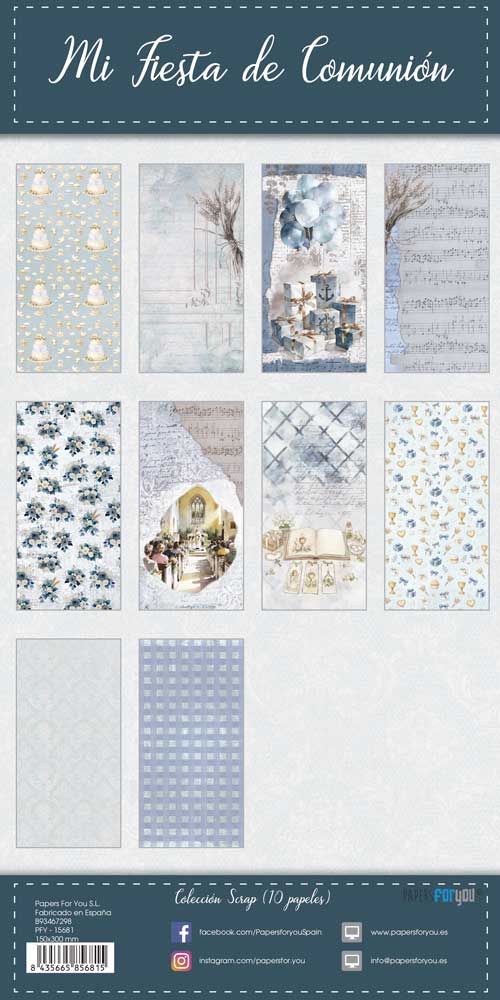 PFY-15681 – Colección 10 Papeles Scrap Una cara 180gr 6″x12″ (Mi Fiesta de Comunión Niño) – pack 4 ud.