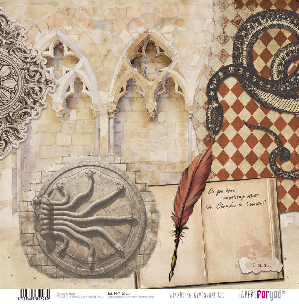 PFY-15795 – Papel Scrap doble cara 180gr 12″x12″ (Wizarding Adventure Red) – pack 12 ud.