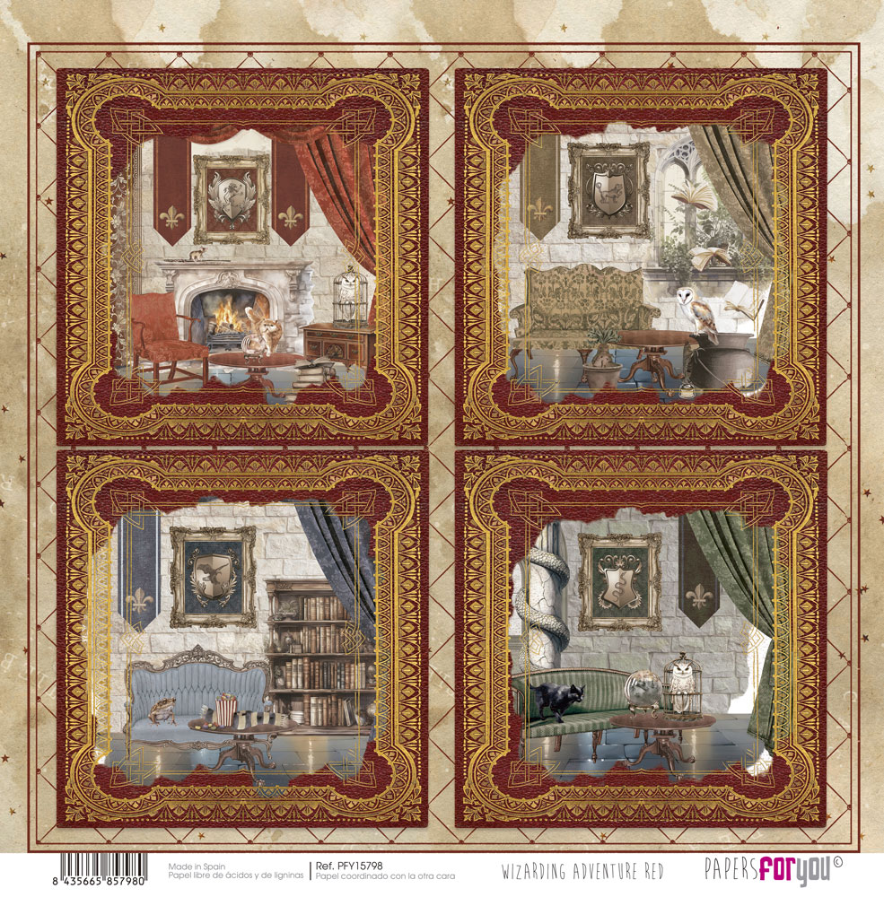 PFY-15798 – Papel Scrap doble cara 180gr 12″x12″ (Wizarding Adventure Red) – pack 12 ud.