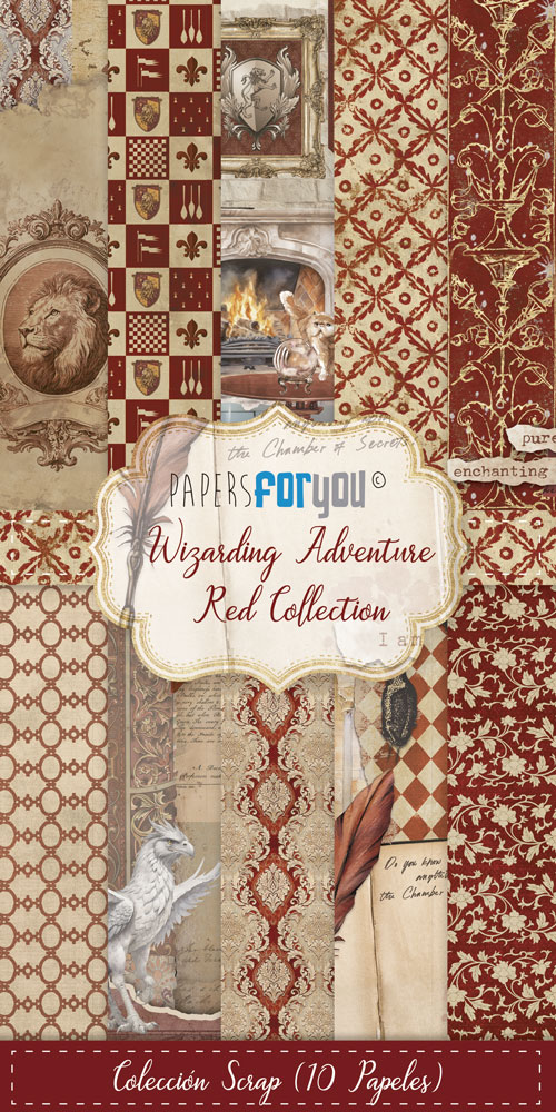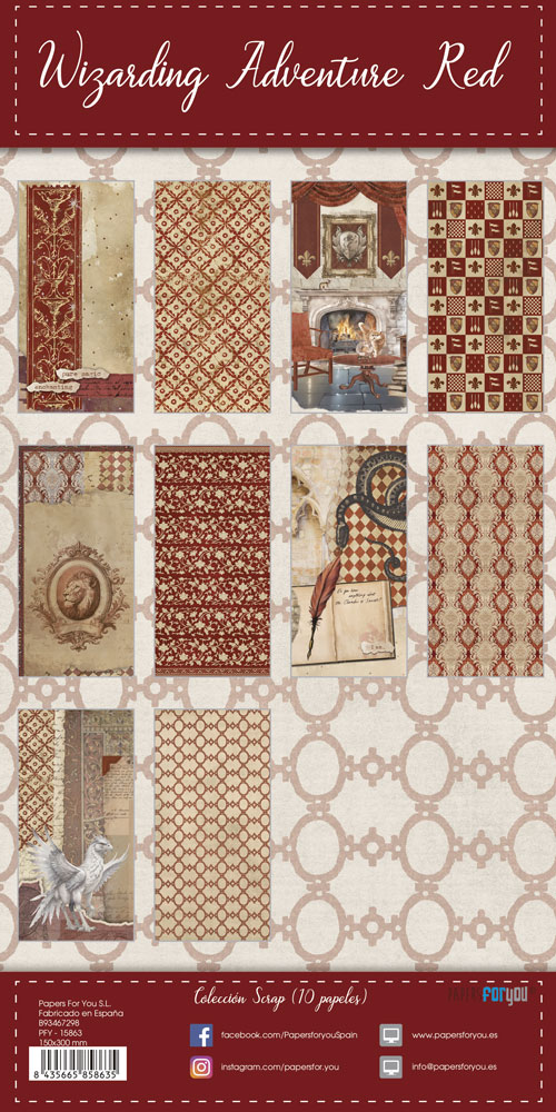 PFY-15863 – Colección 10 Papeles Scrap Una cara 180gr 6″x12″ (Wizarding Adventure Red) – pack 4 ud.