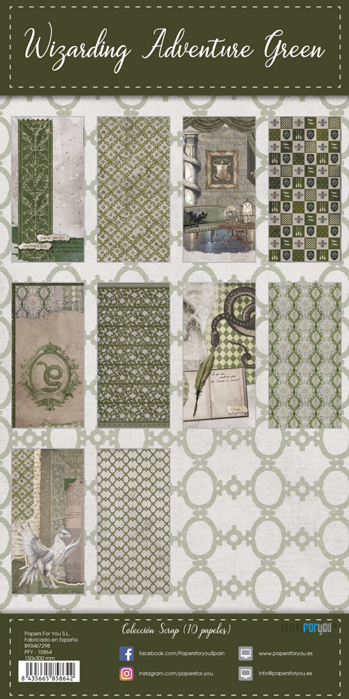 PFY-15864 – Colección 10 Papeles Scrap Una cara 180gr 6″x12″ (Wizarding Adventure Green) – pack 4 ud.