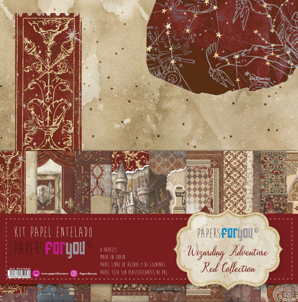 PFY-15953 – Kit 8 Papel Scrap Tela 125gr 12″x12″ (Wizarding Adventure Red) – pack 3 ud.