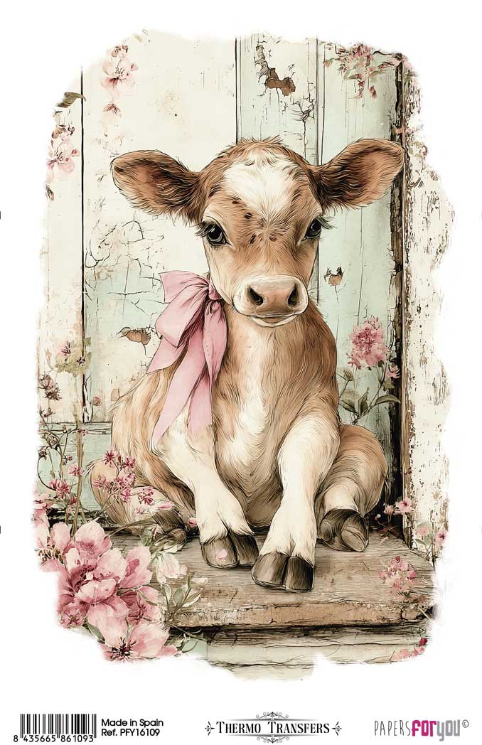 PFY-16109 – Thermo Transfers 20x30cm 8″x 12″ 1 Hoja (Farm & Flowers Cows) – pack 3 ud.
