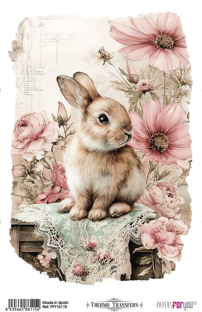 PFY-16115 – Thermo Transfers 20x30cm 8″x 12″ 1 Hoja (Farm & Flowers Rabbits) – pack 3 ud.
