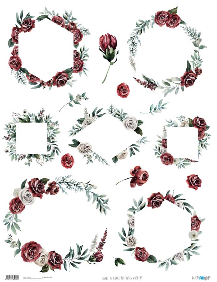 PFY-3209 – PAPEL ARROZ 54X70 RED ROSES WREATHS-pack 6 ud.