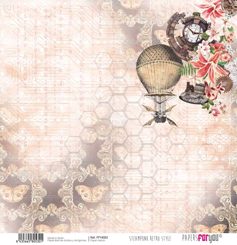 PFY-4053 – PAPEL SCRAP VELLUM STEAMPUNK RETRO STYLE 160g – pack 12 ud.