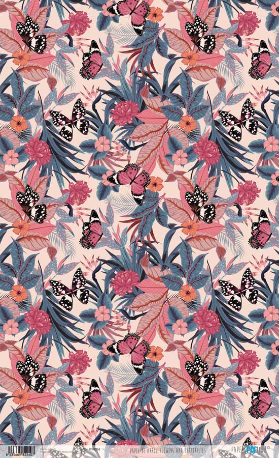 PFY-4224 – PAPEL ARROZ 54×33 FLOWERS AND BUTTERFLIES – pack 6 ud.