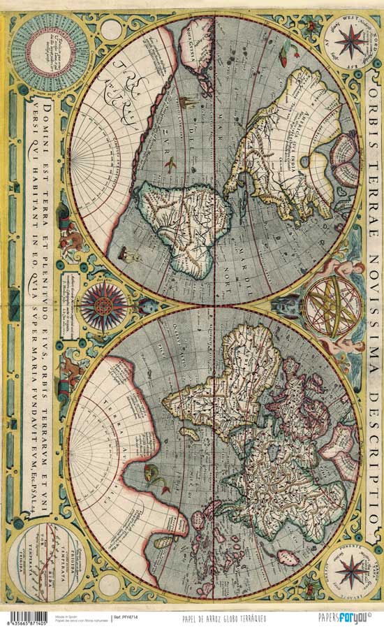 PFY-4714 – PAPEL ARROZ 54X33 GLOBO TERRÁQUEO – pack 6 ud.